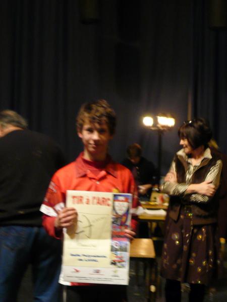 En juniors Olivier obtient après 3 beaux duels le titre tant voulu de champion départemental 2009 pour la première fois. Jérémie, premier aux qualifs du matin tire un duel seul puis s'incline en 1/2 de finale et termine donc 3ème.Romain, malgrè une baisse de régime aux tirs de qualifs du matin signe un beau duel mais perd malheureusement d'un petit point et termine 5ème de ce championnat.Ce sont donc pas moins de 9 podiums pour nos Jeun's qui viennent couronner la saison salle.Rendez-vous au championnat de ligue à QUEVEN pour les quelques qualifiés, et surtout